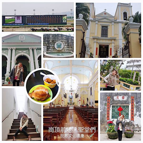 【西望洋斜巷】-【主教山聖堂】-【亞婆井】-【鄭家大屋】-【媽閣午餐】-坐公車到【澳門賽馬會】